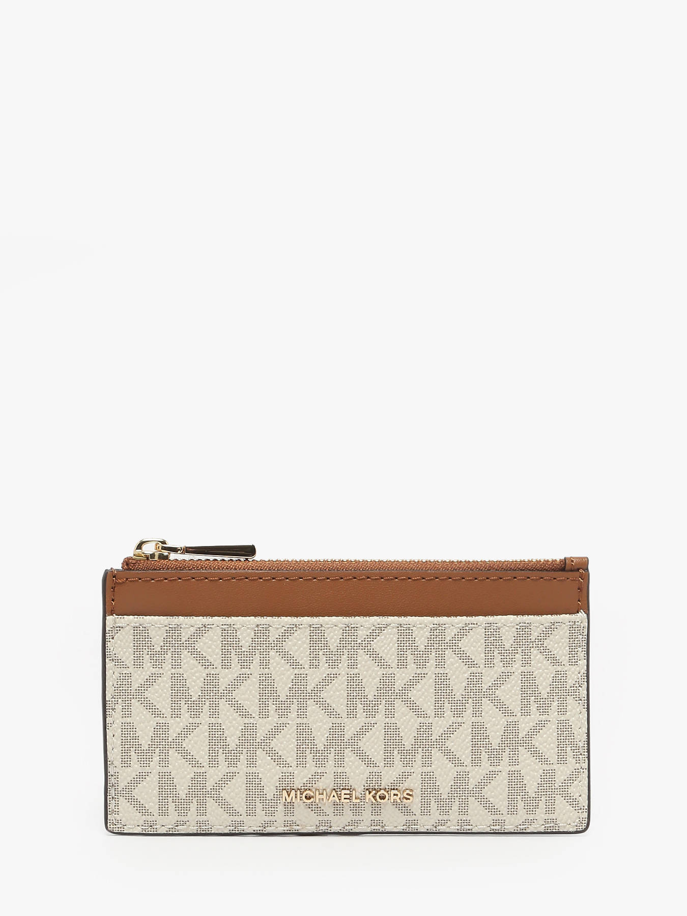 This Michael Kors coin purse combines practicality and sophistication, crafted from coated canvas trimmed with leather for a durable yet elegant finish. Compact yet functional, it features a zipped main compartment to secure your essentials and five back slots for cards and receipts. Inside, a key ring adds a practical touch, keeping your keys within easy reach. The sleek design, adorned with the iconic Michael Kors logo, embodies the brand’s modern and refined aesthetic. Versatile and stylish, this accessory is ideal for those seeking optimal organization without compromising on elegance. It fits easily into any handbag or can be carried alone for a chic and minimalist everyday look.