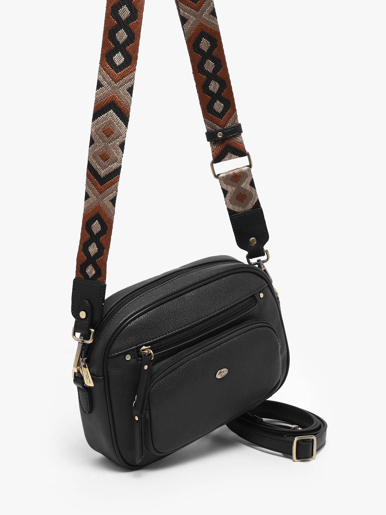 The RONDA HEXAGONA crossbody bag, made of synthetic material, combines durability and elegance for everyday use. It features two practical side pockets and a back pocket, perfect for keeping your essentials within easy reach. The zip closure secures your belongings. The adjustable and removable strap offers comfortable crossbody wear, adaptable to all preferences. Inside, a main compartment holds your personal items, complemented by two simple pockets and one zipped pocket for efficient organization. Lightweight and functional, this versatile bag suits all styles and stylishly accompanies your urban days or casual outings.